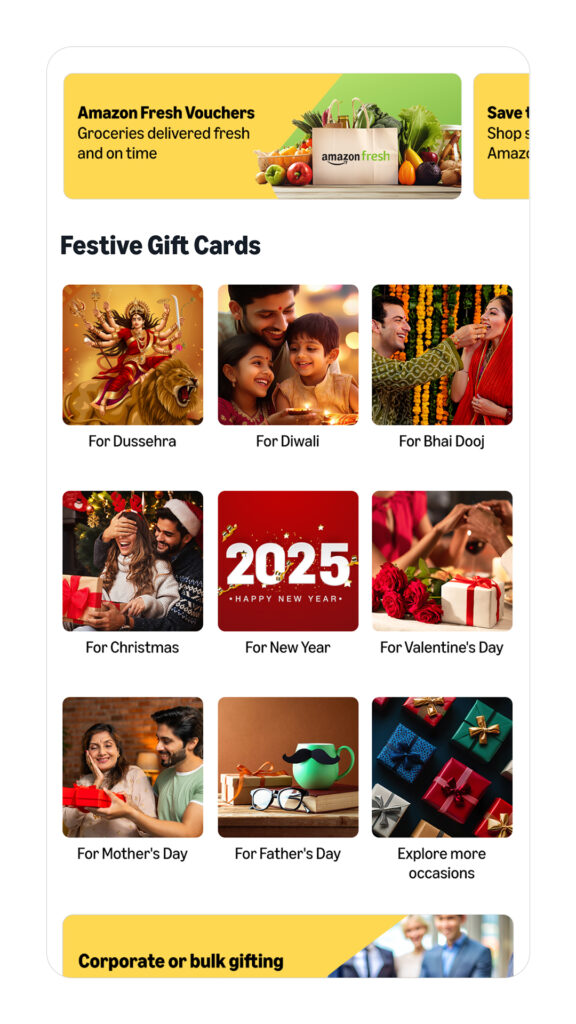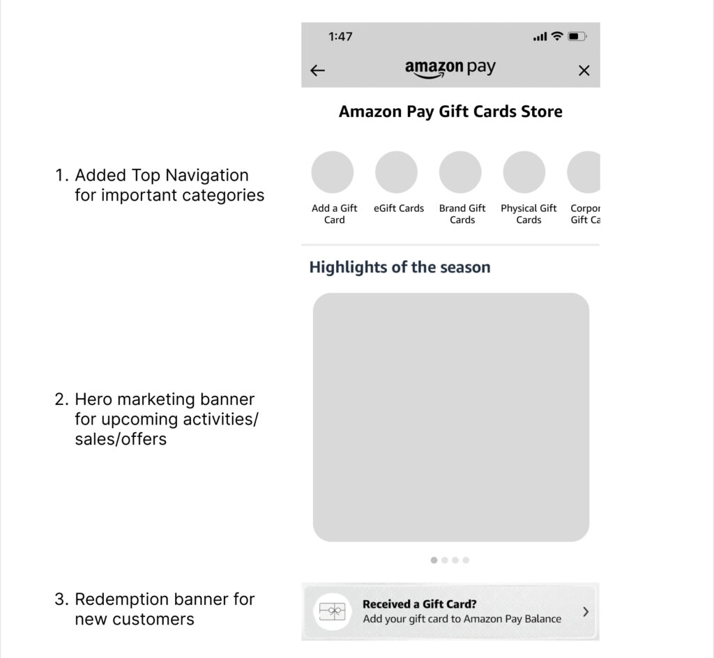 - Introduced ATF carousel for top gift cards/seasonal picks