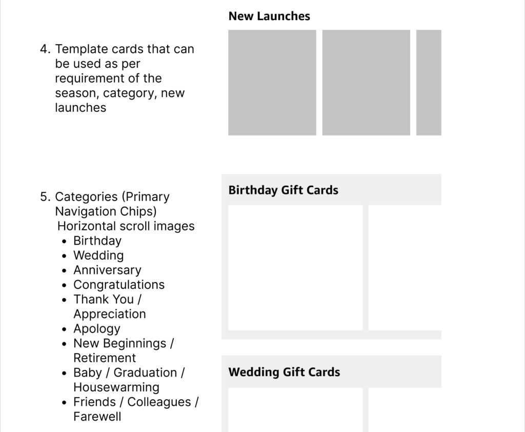 I restructured the IA(Information Architecture) of the Gift Card store. I created a rough wireframe of the page based on the new IA(Information Architecture). After stakeholder’s alignment started working on the digital mocks.