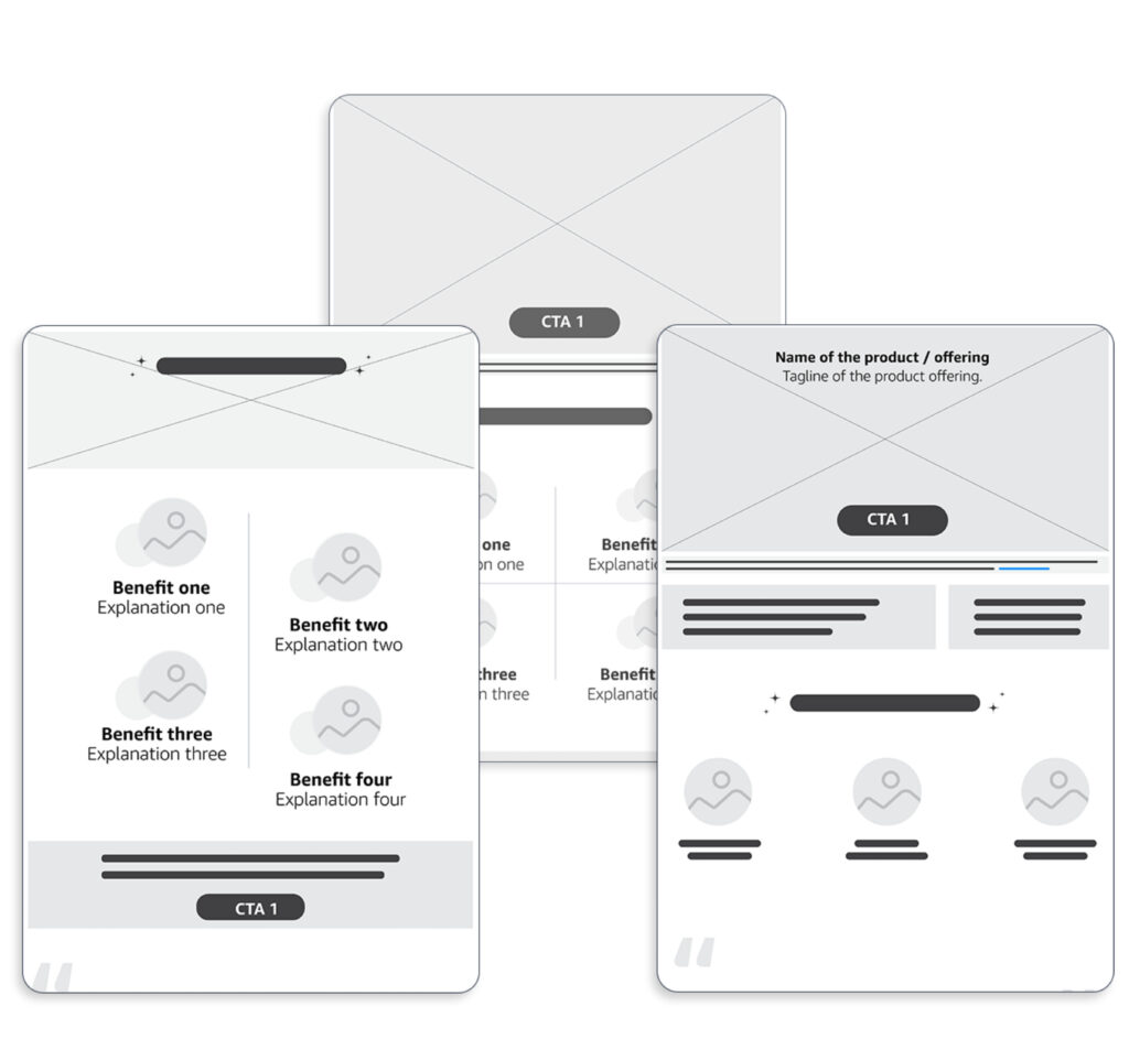 After presenting the initial designs with leadership, I further iterated the mocks incorporating the feedbacks shared by leadership and created all the 4 landing pages and shared with the stakeholders for usability testing.